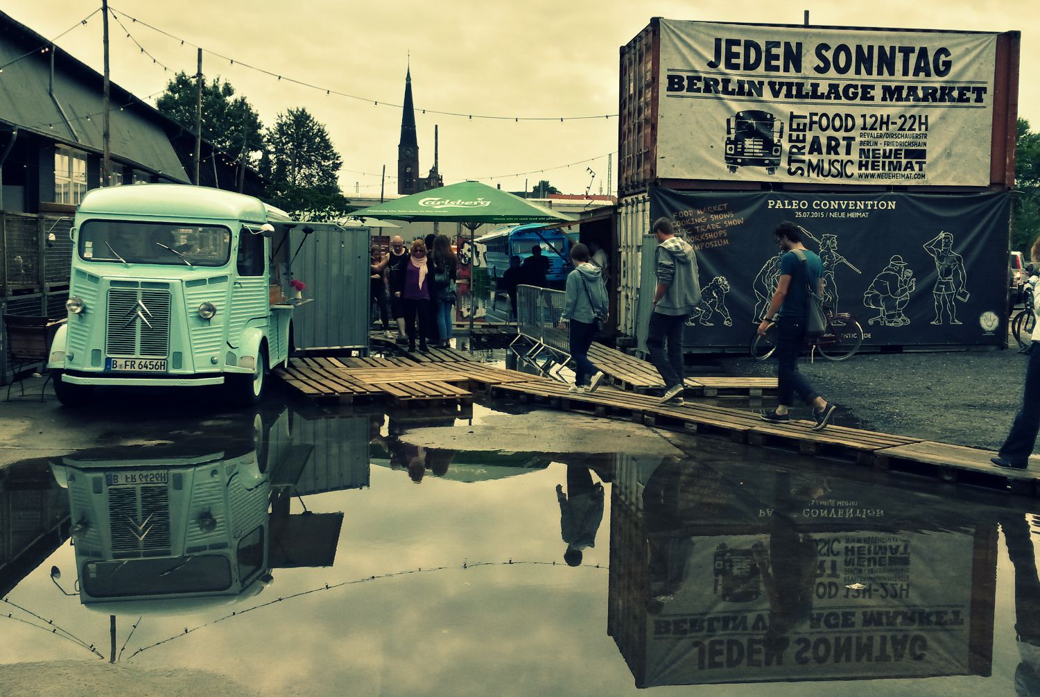 Sonntags findet der "Berlin Village Market" statt. Eigentlich sind Street Food Sachen nicht so unser Ding, aber wir waren früh dort, es wurde noch kein Eintritt verlangt und es war Gewitter angekündigt, also sind wir mal schauen gegangen.